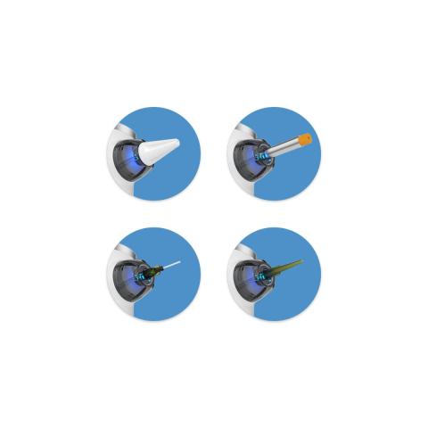 - Einfache Handhabung: Die Aufsatz-Düsen lassen sich im Handumdrehen wechseln und hygienisch reinigen.